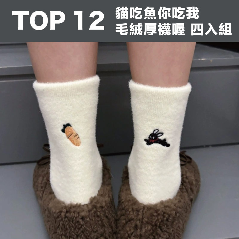 貓吃魚你吃我-毛絨厚襪喔 四入組 | 中筒襪