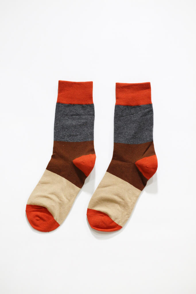 像這樣螢光色或比較亮眼的襪子,給人的感覺比較活潑、有個性,可以考慮搭配白鞋或是互補色的鞋子。